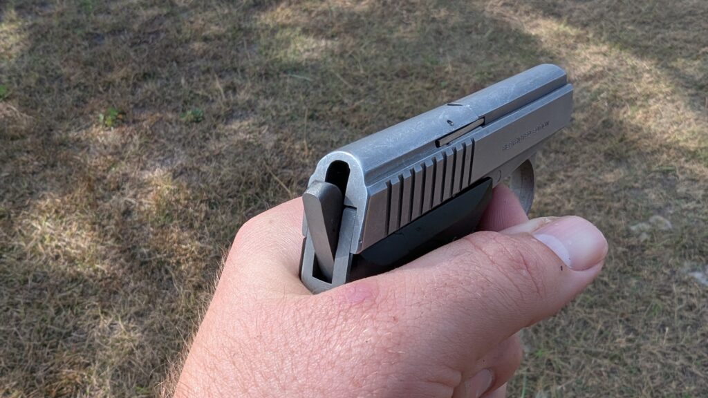 This wasn’t the case with the LWS-32 due to its design, and it’s only supposed to shoot hollow points. The LWS-32 utilized a chamber ring delayed blowback system to help with the increased recoil of the .32 ACP in such a small pistol. This system uses friction to delay the opening. The case expands into a ring in the chamber to delay the opening of the breech.
