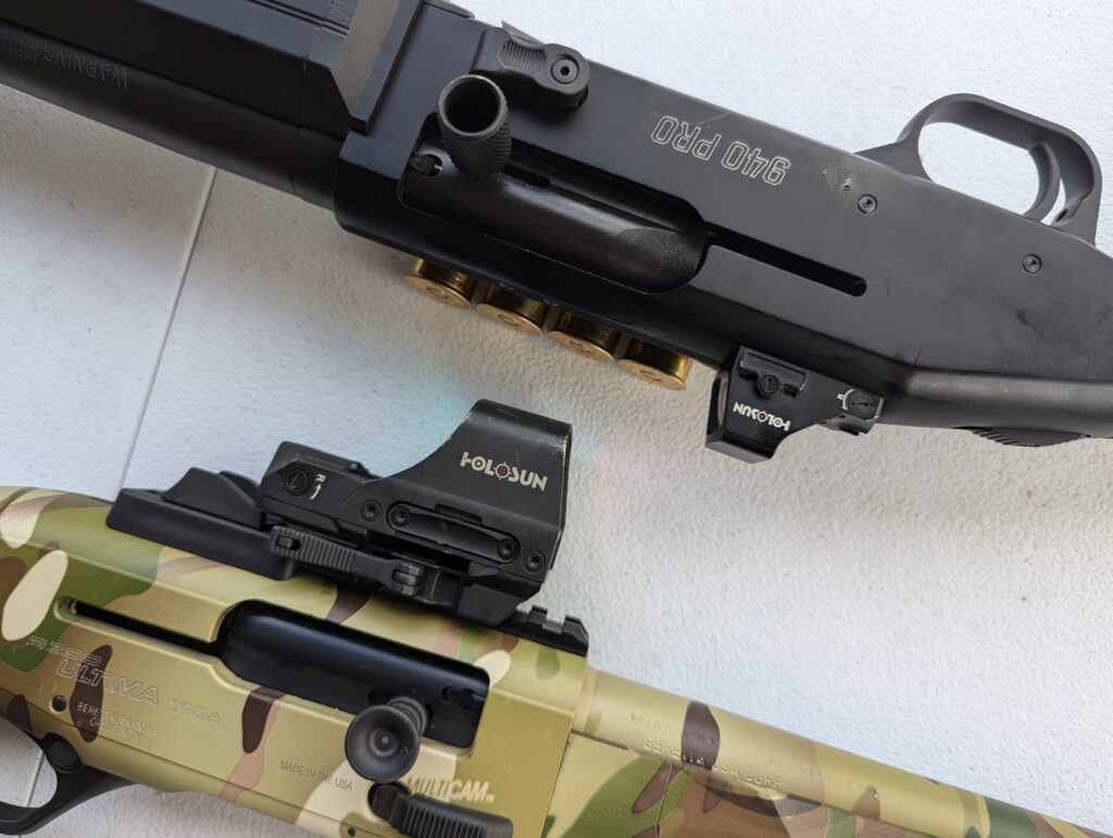 I generally want to be able to access the battery compartment without moving the optic. I also prefer my buttons to be large and easy to press. Those are little things, but I value them on a shotgun.