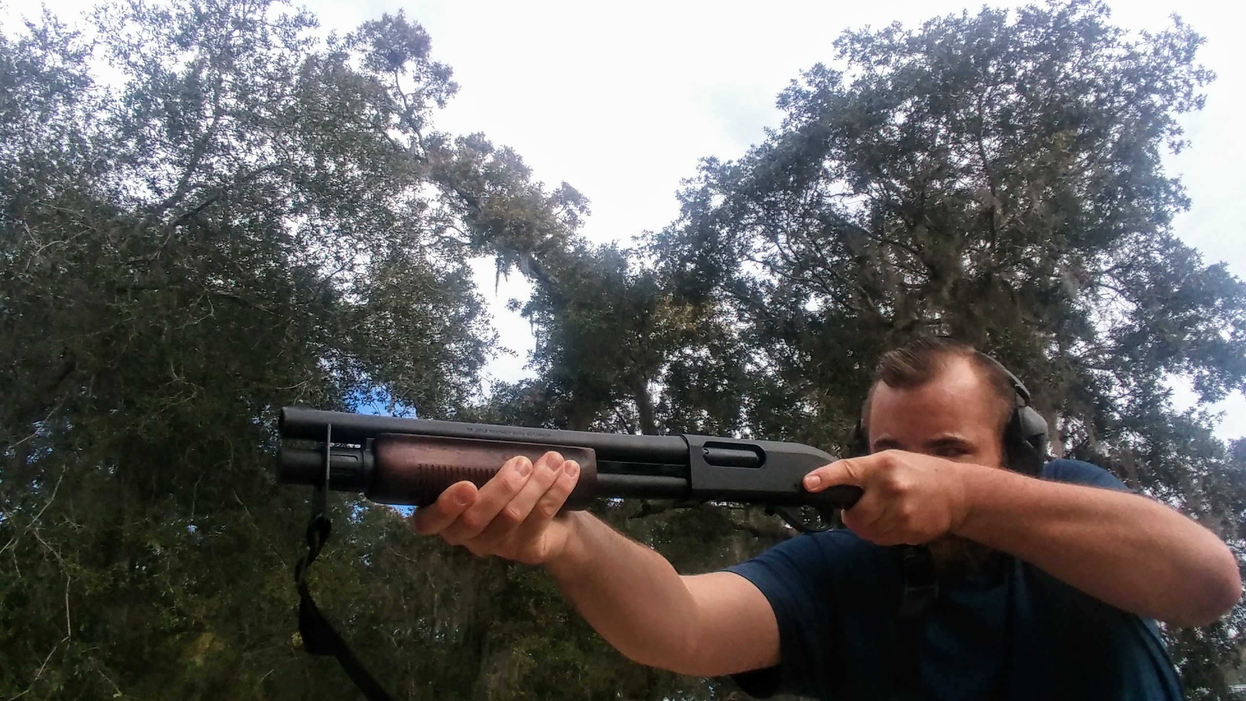 Recoil with birdshot is pleasant and hardly uncontrollable. When you move into buckshot, it becomes a little more a challenge to hold on to. Proper technique is undoubtedly needed. You need to extend your nonfiring hand forward and almost lock your arm. The rear hand should be pulling rearward on the gun, and you aim as if you would a stocked weapon. I typically aim right below the target and let it fly.
