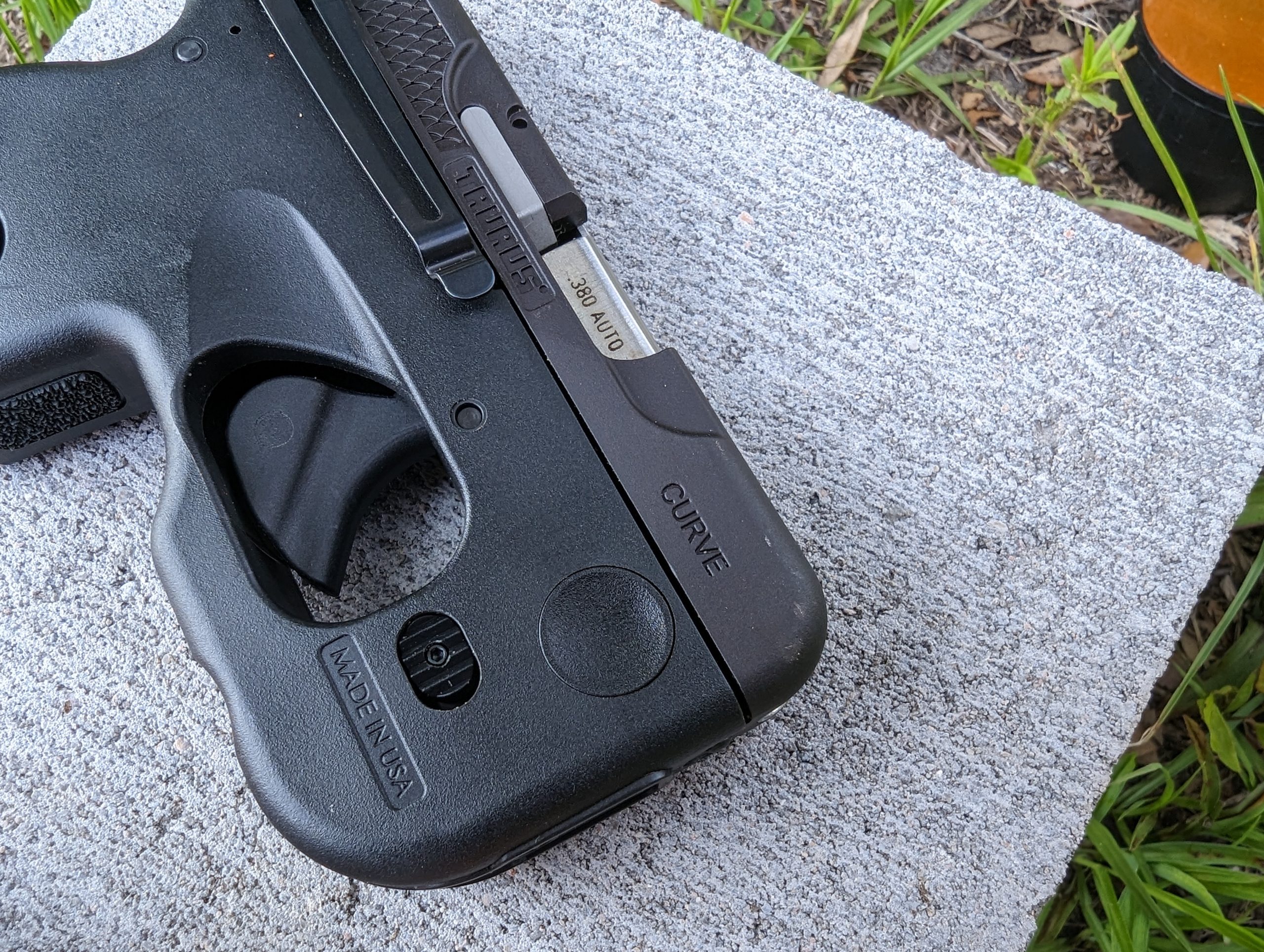 Curve describes it aptly. They took a TCP style .380 ACP and curved the frame to better fit the body. It’s curved to be carried on the right-hand side in a strongside IWB configuration. The idea is that the gun’s design will mate better with the natural curves of your body. This only works when it’s carried without a holster which Taurus admittedly set you up for.