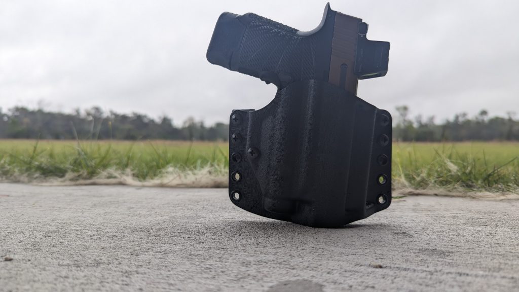 The Werkz Origin OWB holster is a molded polymer holster that’s 100% modern. My main focus when purchasing a holster is this mental checklist. I need it to be safe, I need good retention, and I need to be able to draw with speed and efficiency. For concealed carry, I need it to be concealable as well. The Werkz Origin uses passive retention to retain the weapon, and the expert molding ensures the trigger remains protected and is impossible to fire when holstered.