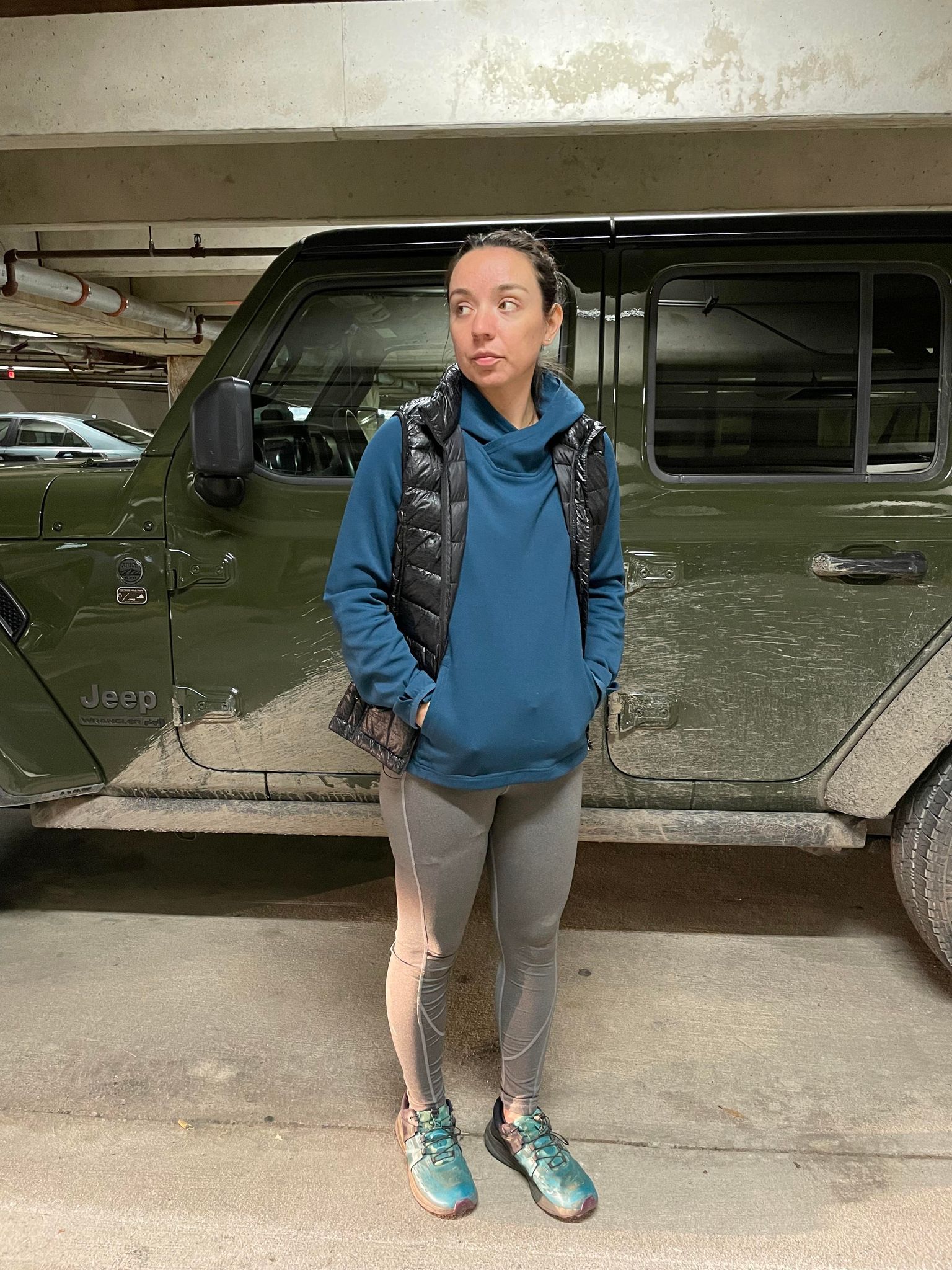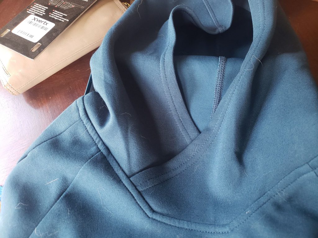 If I were to change anything about the hoody I would ask that that change the material on the kangaroo pouch. It wasn’t uncomfortable, just sometimes I do only wear a sports bra with a hoodie so the difference in material is a tad weird.