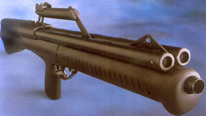 The NeoStead 2000 was designed in the 1990s but didn’t enter production until the 2000s, thus the name. The NeoStead 2000 did KelTec before KelTec made it cool. These weird shotguns used dual tube magazines that each held six rounds of ammo. The NeoStead 2000 also used a bullpup format.