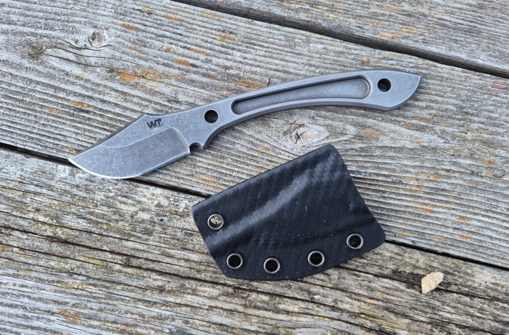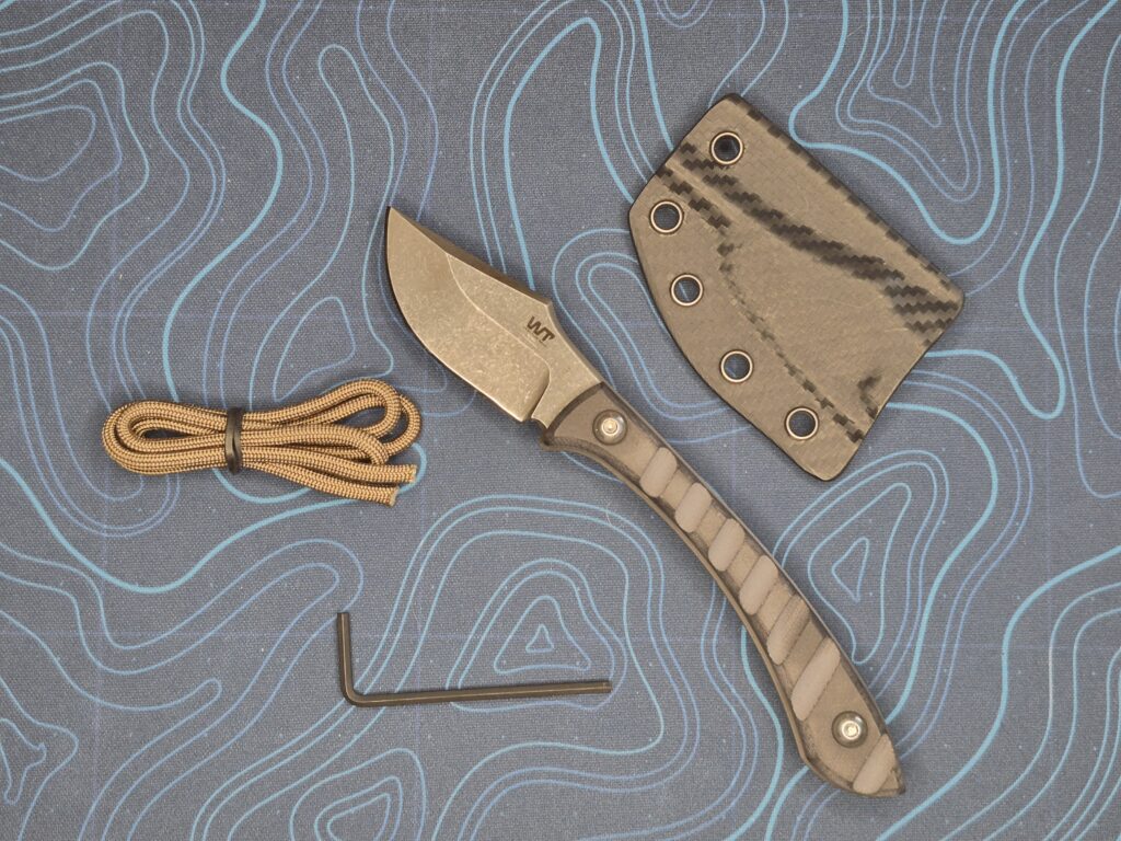 The carbon fiber sheath has several attachment points. You can easily wear this as a neck knife. They even include a length of paracord to make the lanyard. I usually just drop it in my pocket if I’m going to be carrying it for the day.