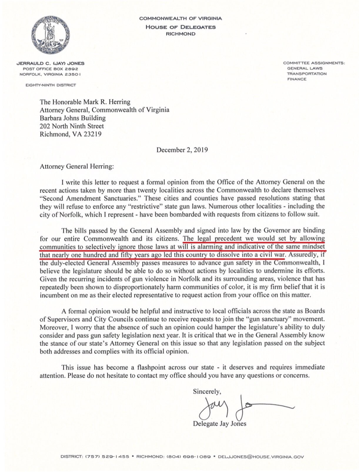 Breaking & Current Events Featured News Flashpoint Virginia By Keith Finch The letter above from Commonwealth of Virginia delegate Jay Jones to the Attorney General, Mark Herring, is indicative of a... Read more »