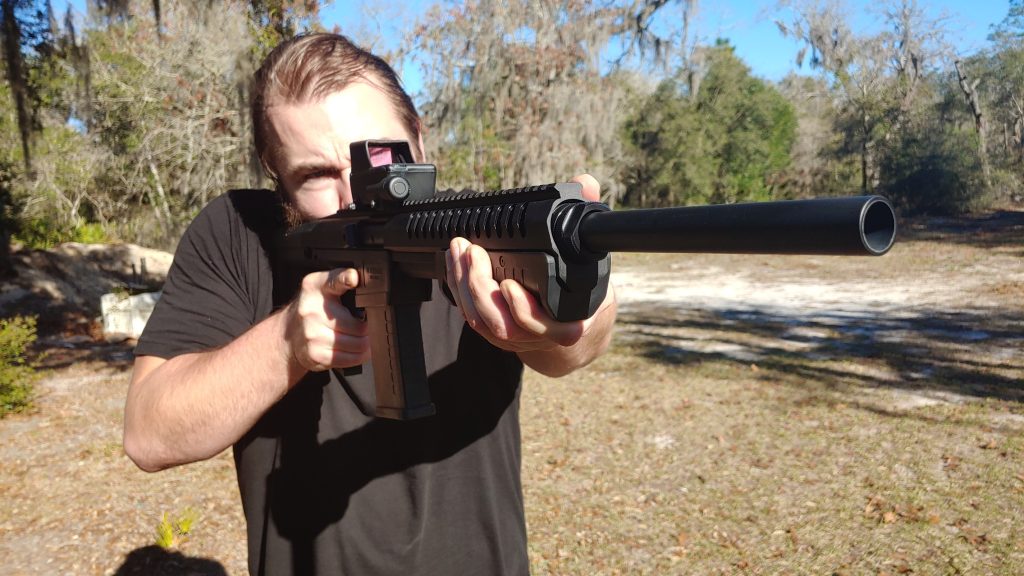 The short and compact design makes it very well balanced, and it handles less like a shotgun and more like a rifle. Shotguns are all about swing, but that’s not the case here. You move it and use it like a carbine, directing its intention more than swinging it on target. With a regular shotgun, a lot of your shooting is done with a target focus and almost instinctually as you come on target.